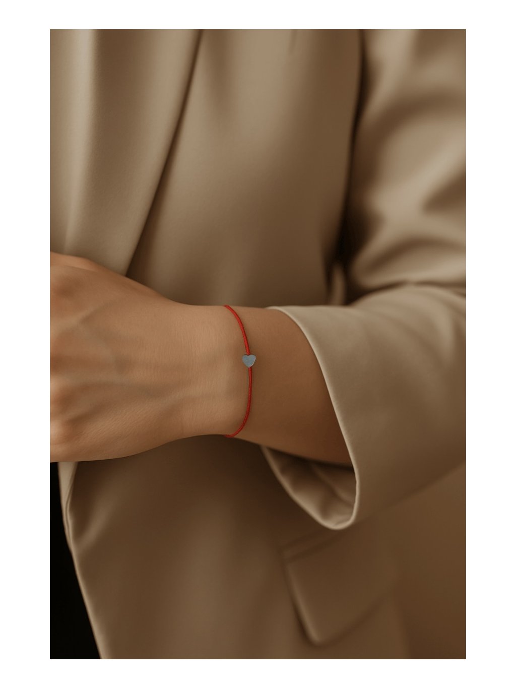 Tento kabbalah náramek originál je vyrobený z červené textilní šňůrky a zdobí ho elegantní srdíčko z hematitu (6 mm).